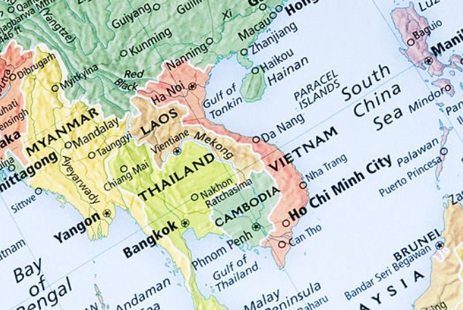 Sur la carte du Vietnam, du Laos et du Cambodge, vous remarquerez que les frontières sont étroitement liées :