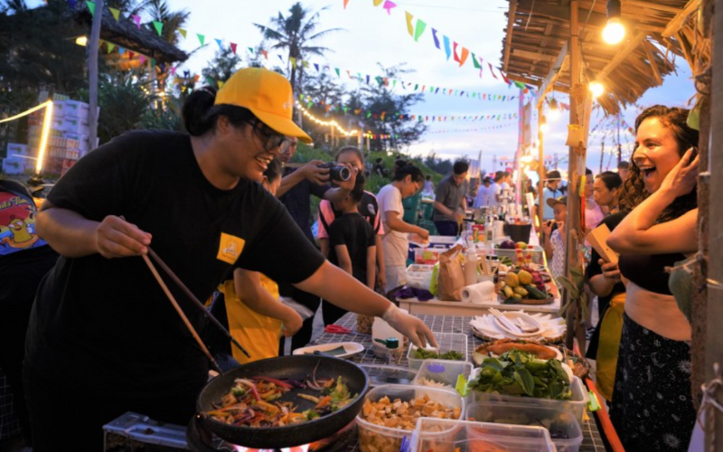 À la tombée de la nuit, la rue des lanternes prend vie autour de ses restaurants aux terrasses ouvertes. Pendant la fête des lanternes, Hoi An propose diverses expériences gastronomiques uniques. Il est préférable d’apporter de l’argent liquide, car la plupart des stands n’acceptent pas les cartes.