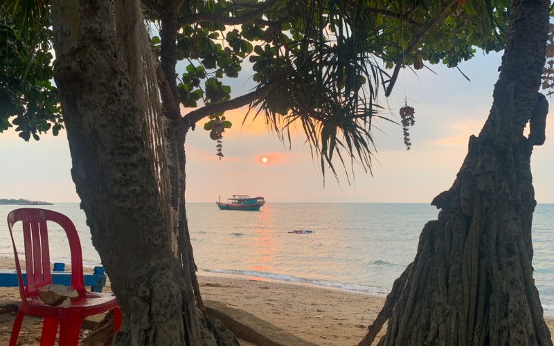 Le long de la plage, des panneaux proposent des excursions en bateau vers différents sites de l’île ainsi que vers les îles voisines. Koh Pos, surnommée Île Serpent, se trouve à environ 30 minutes, tandis que Koh Svay, connue sous le nom d’Île Mangue, est également souvent visitée.