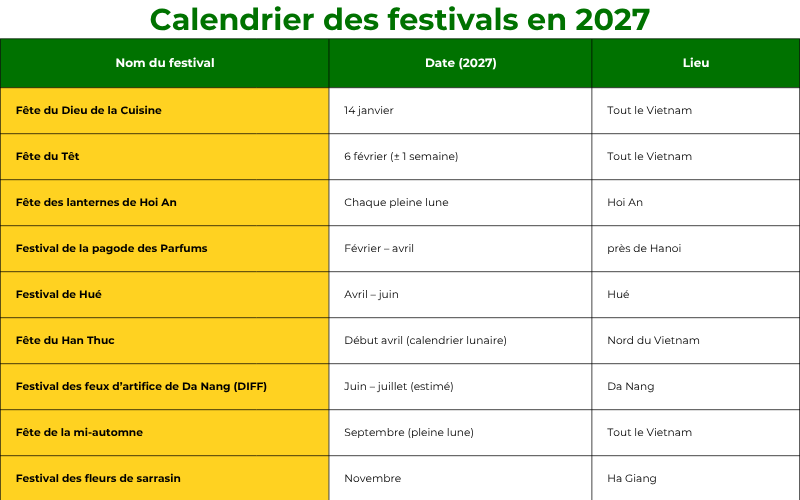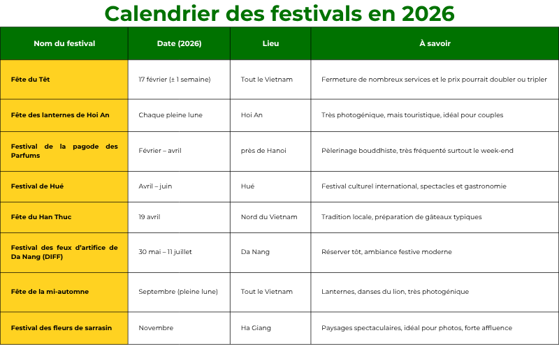 Voici la liste des principaux festivals vietnamiens de 2026 et 2027, afin que vous puissiez planifier votre voyage en conséquence pour une expérience plus enrichissante.