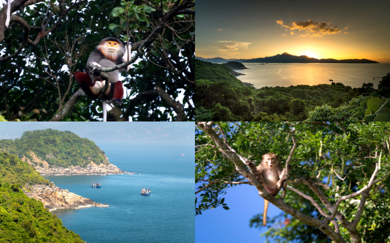 Questa penisola è anche l’habitat di centinaia di specie animali. Tra queste spicca il Douc dal ciuffo rosso, soprannominato la “regina dei primati”, con una popolazione di circa 300–400 esemplari rigorosamente protetti. Per avvistarli non basta osservare i colori vivaci del loro mantello: i viaggiatori più attenti possono riconoscerli anche dai richiami o dai salti agili da un ramo all’altro.