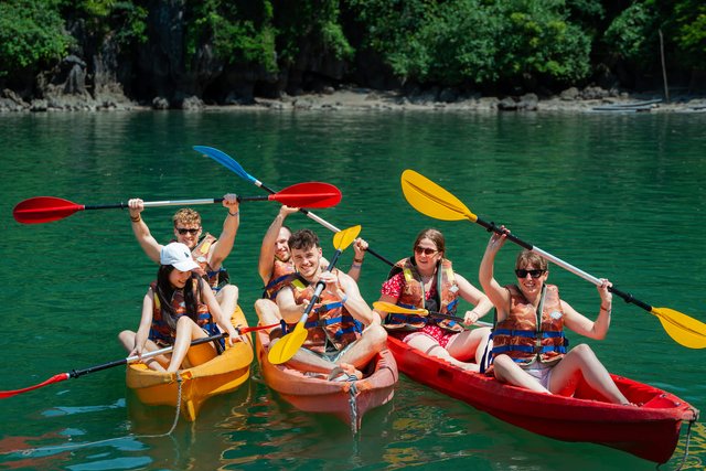 After a refreshing breakfast at your hotel, we will depart for Lan Ha Bay – Ha Long Bay’s lesser-known little cousin. After a three-hour drive, you will arrive at Cat Ba, the largest island in the Gulf of Tonkin, and head to Ben Beo pier. We will board a traditional boat for a cruise on the magical Lan Ha Bay. You will observe floating villages and marine farming while being served a delicious lunch on board. Around 1:30 p.m., the boat will anchor in front of the pristine beach of Van Boi where you will have free time to swim in the water or sunbathe on the ship’s deck. Later in the afternoon, we will head to Hang Ca or Dau Be cave for a kayaking excursion, another great way to experience the bay. At the end of the day the boat will drop anchor for the night in the middle of the bay.